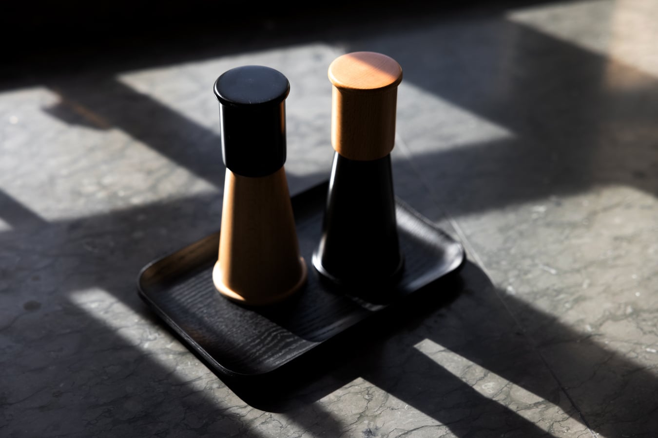 Gurken and Hanna is a stylish set that combines function, natural materials and timeless design. The conical Gurken salt and pepper mills, designed by Daniel Enoksson, are inspired by the powerful shapes of mountain landscapes and crafted from certified beech wood with a durable ceramic grinding mechanism. Paired with the Hanna plate in beautiful wenge wood, the set creates a warm and natural presentation. The rectangular plate with softly curved edges is perfect as a base for the mills, making them just as decorative on the dining table as on the kitchen counter. A thoughtful set that elevates everyday moments and makes a lovely gift. Design: Daniel Enoksson x Sagaform & Studio Sagaform.