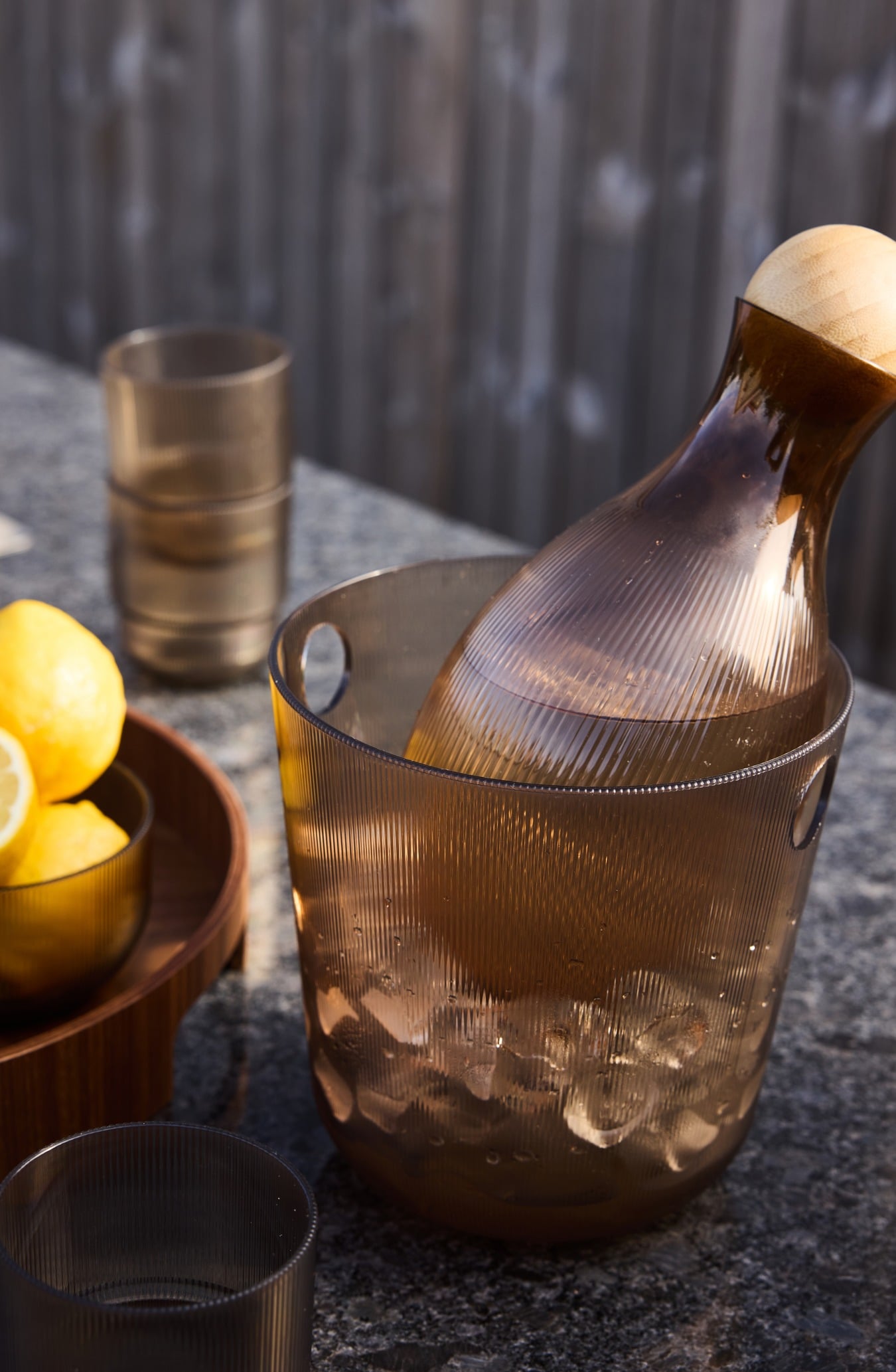En kollektion som kombinerar glas, trä och skandinavisk form på ett sätt som känns lika naturligt som tidlöst. Här hittar du bland annat vår ikoniska vinkaraff.